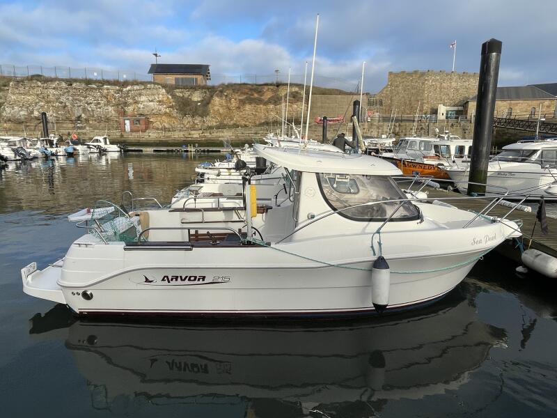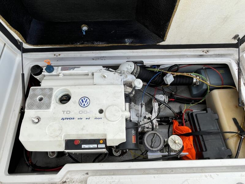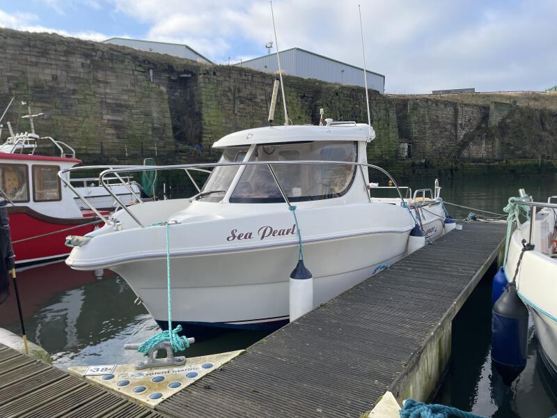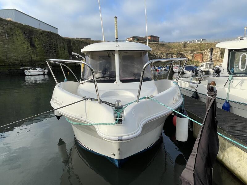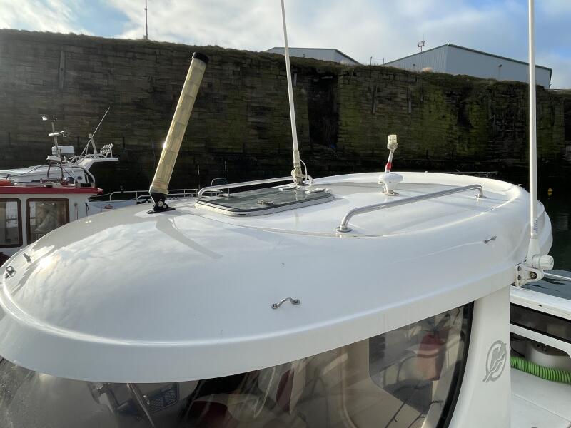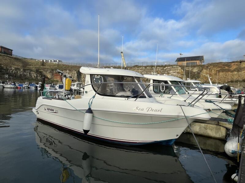"Sea Pearl" is a great example of the popular day angler from Arvor. This is the central wheelhouse version allowing access both sides of the cabin. White hull which is preferable to the coloured versions. Large deck/fishing area with locker storage and live bait well. Fully serviced inboard VW 100TDi, 5-cylinder inboard with 948 hours since new. Engine has been well maintained including NEW timing belt, water pump and associated belts. Most recent service was in October 2025 including engine anode.