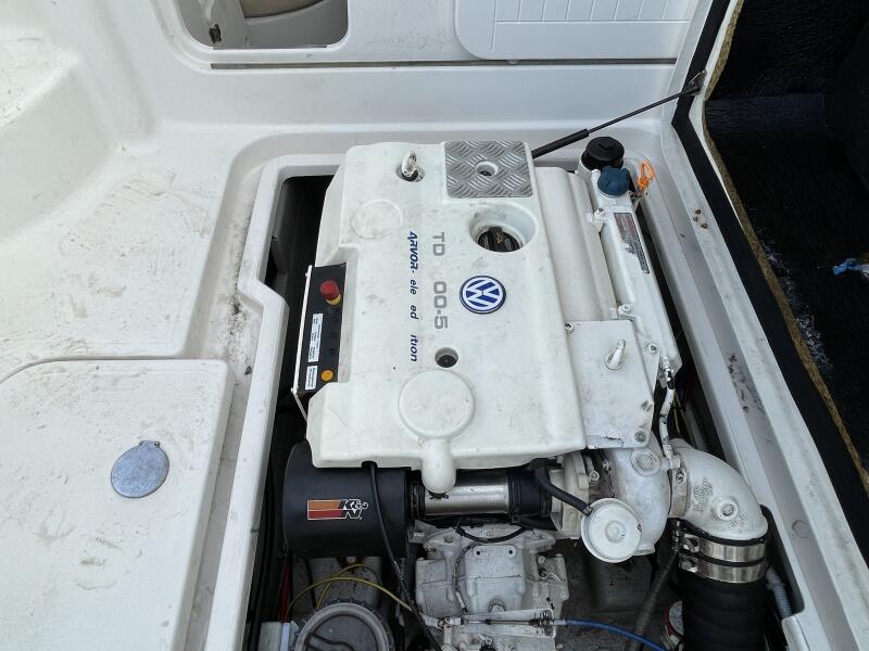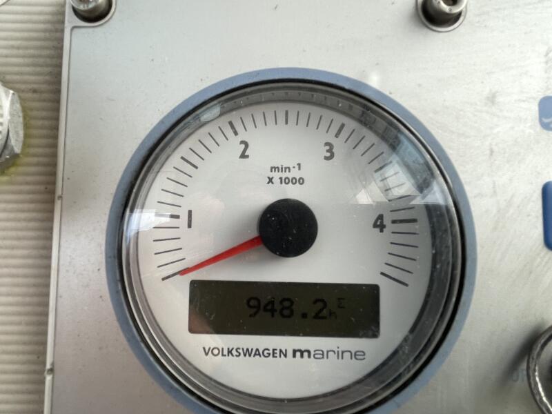 Vessel powered by a very well maintained VW 100TDi inboard diesel. This 5-cylinder work horse is rated at 100hp and will push the boat along nicely at 14-15 knots depending on sea state and ammount of crew. Reduction gearbox driving stainless steel shaft and 4-bladed bronze propeller. Engine has completed 948 hours and was serviced in late October 2025.