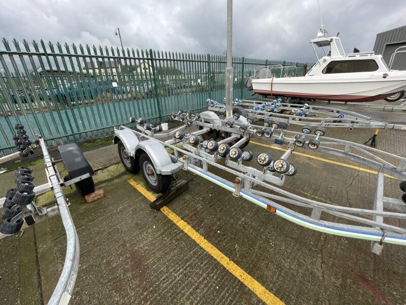 Simrad GO7 Vivid colour chart plotter with relief shading transducer gives excellent definition when hunting the wrecks. 2-berth cabin. Electric deck wash pump. Pot hauler. Twin axle yard trailer could be made road legal by the addition of brakes.