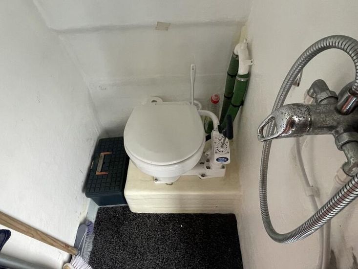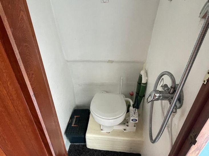 Prior to entering cabin there is a head with sea toilet and hot&cold pressurised shower which is ideal for cleaning up after diving.Â