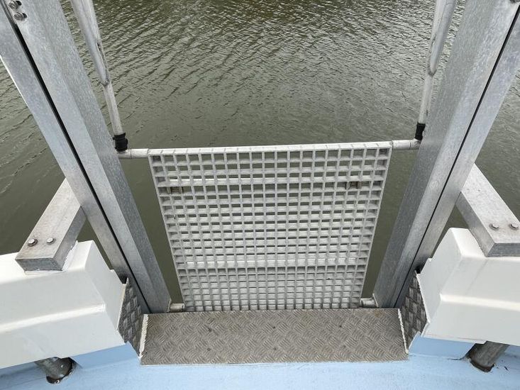 Reinforced transom with Divers access platform that raises and lowers divers into the sea.Â