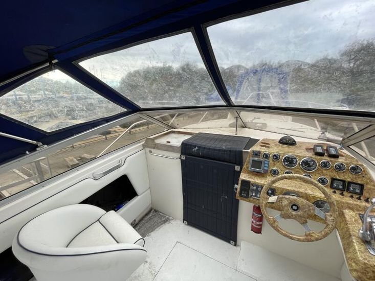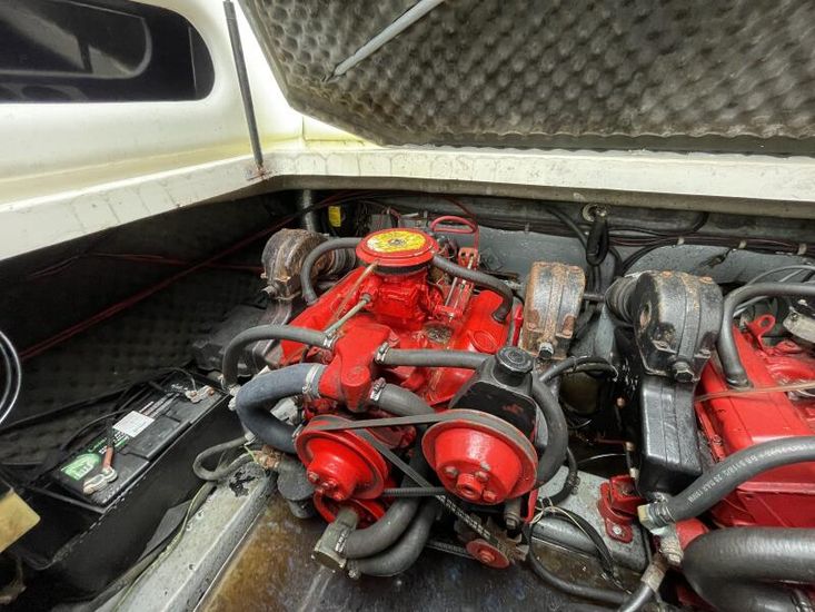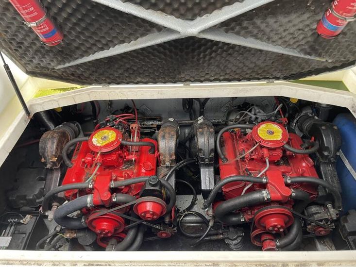 Vessel powered by twin Volvo Penta AQ175A inboard petrol engines. These 6-cylinder units are coupled with Volvo 280 sterndrives. Electric trim and tilt.