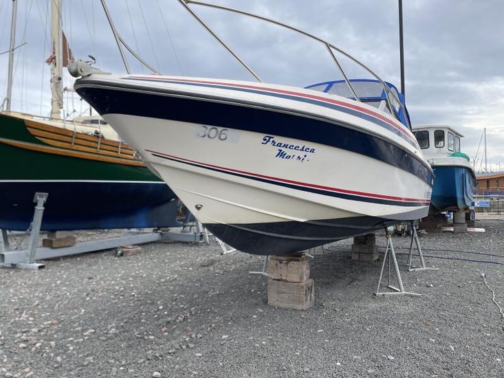 The Portofino range has been hugely successful for Sunseeker over the years. Francesca Marie is the smallest offering and was introduced to the boating public in the early 80’s. Like ‘Francesca Marie’ most were twin engine petrol boats as the emphasis was on performance. The whole ethos behind this boat was its spacious cockpit from which to sunbathe or enjoy water sports. Although mainly used as a day boat, there is a cuddy cabin featuring 2 berths, a fridge and a head with potti.